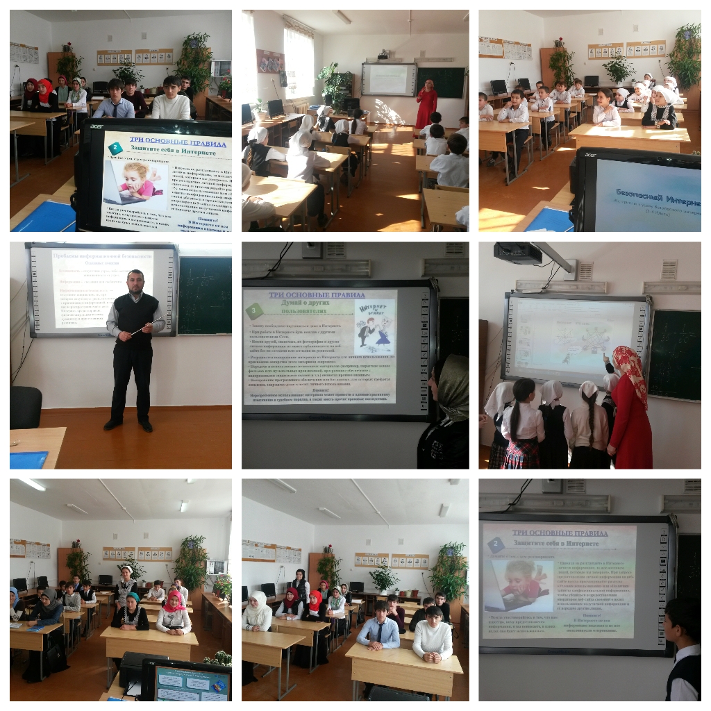 29.10.2016В соответствии с решением парламентского слушания Совета Федерации от 12 марта 2014 года во всех школах Российской Федерации 30 октября 2016 был запланирован Единый урок по безопасности в сети Интернет. 29 октября в соответствии ранее полученного письма от Администрации Веденского муниципального района во исполнение копия письма члена Совета Федерация Федерального Собрания РФ Л.Н. Боковой, в МБОУ «Даргинская СОШ №1» были проведены уроки в младших и в старших классах на тему «Безопасность в сети Интернет». В младших классах урок провела руководитель ШМО начальных классов Зубайраева З.Э., а в старших классах учитель информатики и ИКТ Насуханов У.Т.