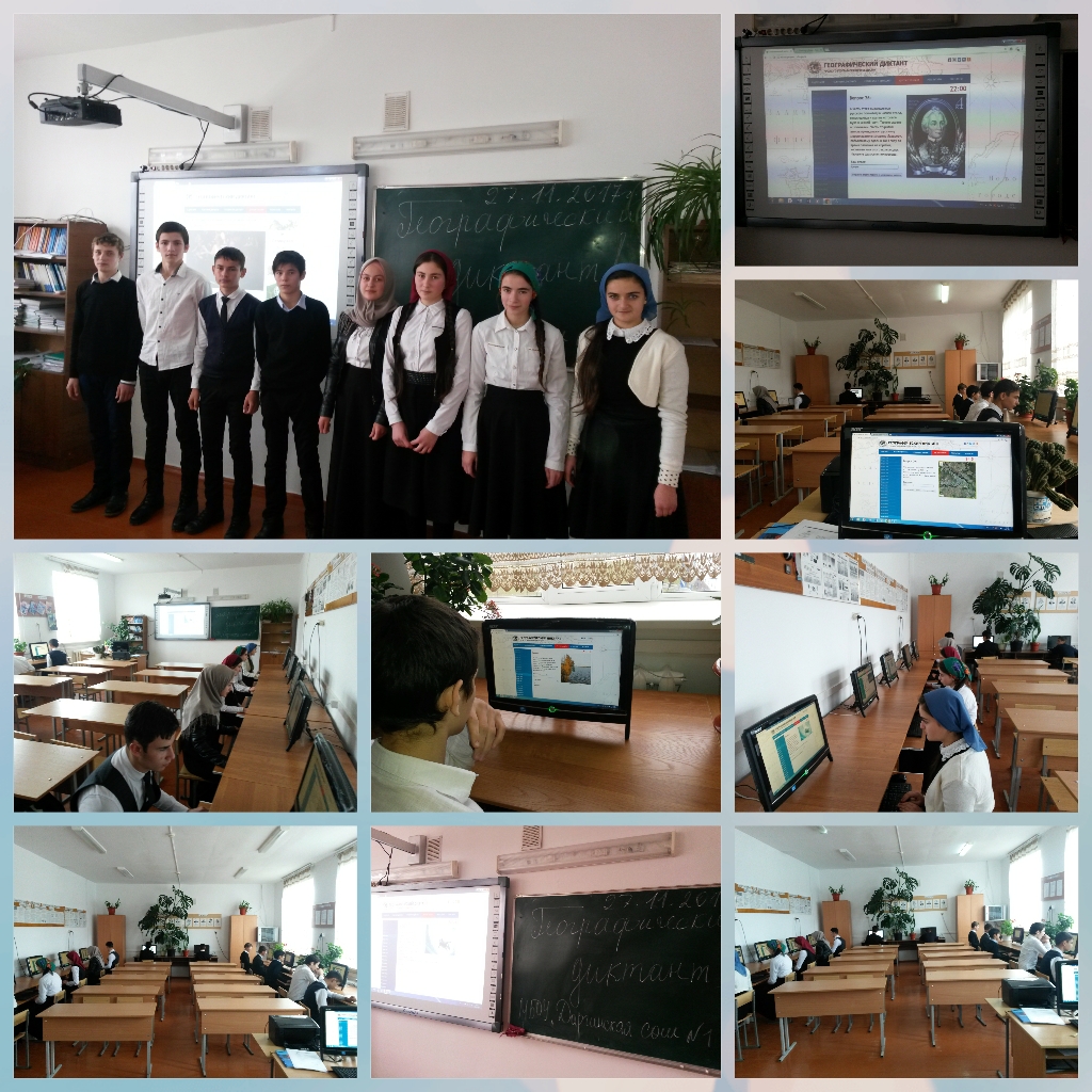27.11.2017Сегодня в школе среди учащихся 9 -11 классов в кабинете информатики в онлайн режиме прошел Географический диктант – 2017. Диктант включал в себя 30 тестовых заданий, разделенных на три блока. Первый состоит из вопросов на знание географических понятий и терминов. Второй направлен на проверку умений работать с картой. Третий — на определение географических объектов по записям дневников путешественников и отрывкам из художественных произведений.