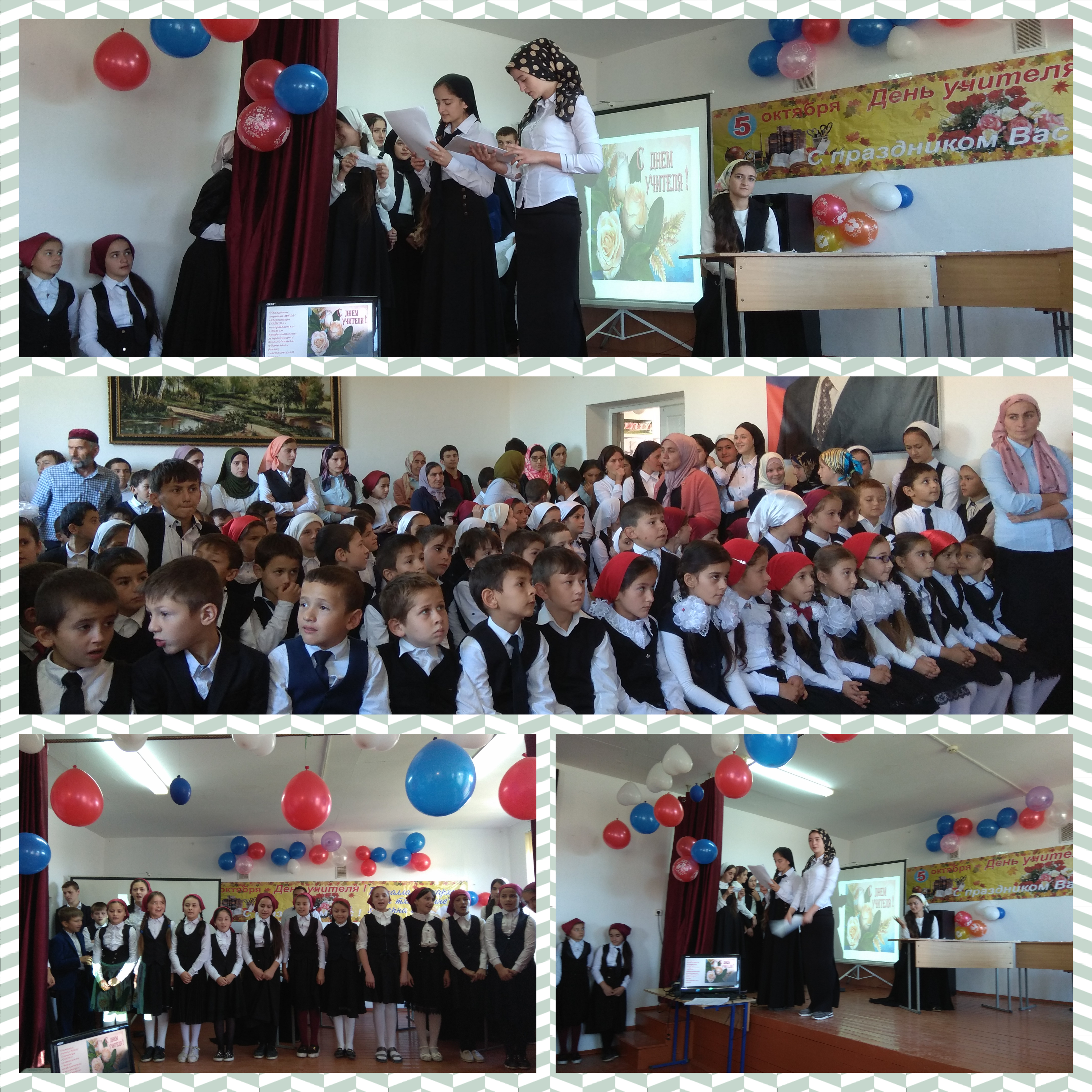 06.10.2018Замечательный всемирный праздник День Учителя прошёл в нашей школе! В этот осенний день, школьники встречали преподавателей в школе и поздравляли их с праздником. Мероприятие, посвящённое Дню учителя, проходило в актовом зале. Дети разных возрастов – от первоклашек до старшеклассников – подарили учителям замечательные песни и интересные стихи. Много слов было сказано о важности профессии учителя. Хорошим дополнением праздника стала видео презентация, которую с любовью сделал и подарил учителям 10 класс.
