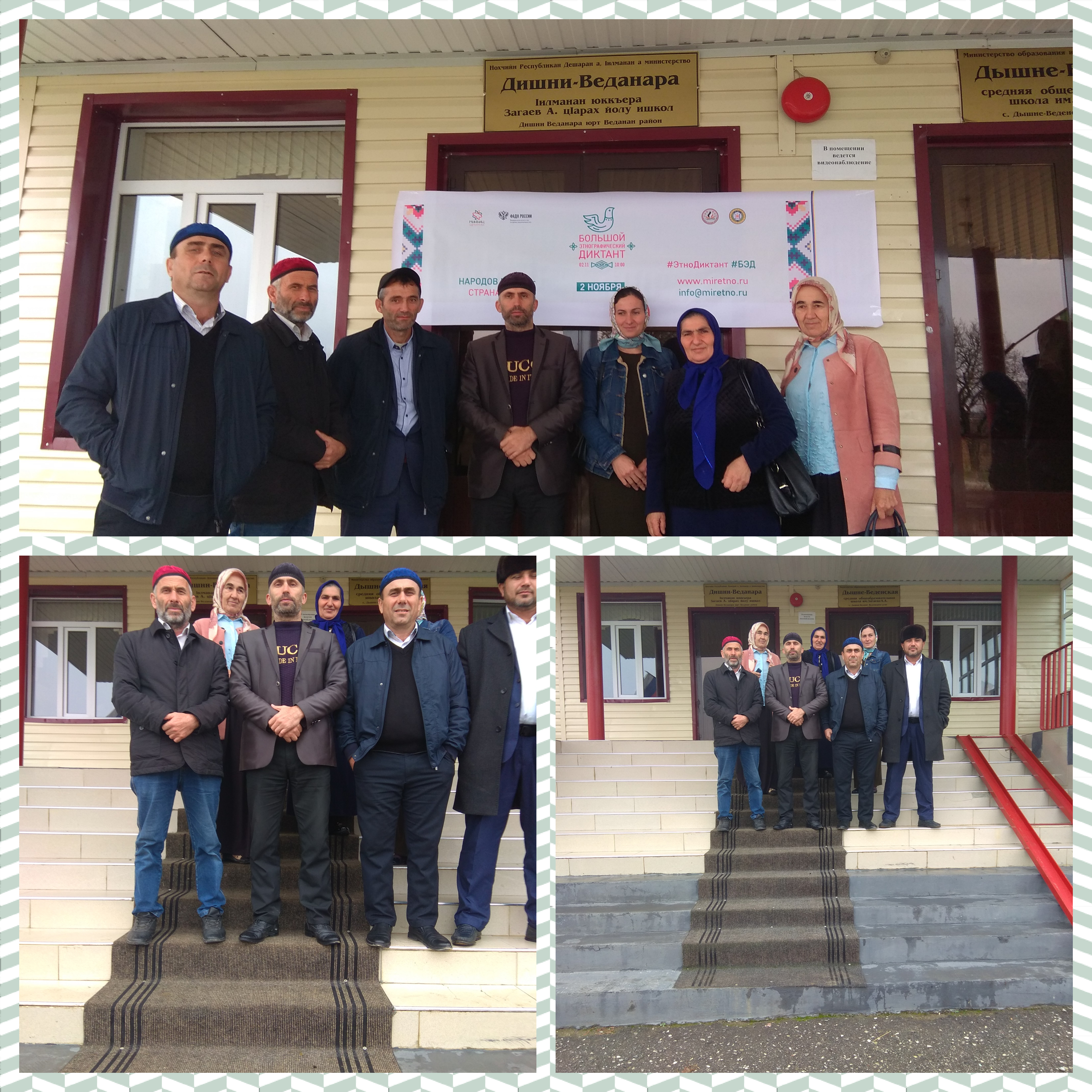 02.11.2018Всероссийская акция «Большой этнографический диктант» прошла в 85 субъектах Российской Федерации накануне Дня народного единства, 2 ноября. Задания диктанта состоялись из 30 вопросов: 20 вопросов – общих для всех и 10 региональных, уникальных для каждого субъекта. На написание диктанта участникам даётся 45 минут. Максимальная сумма баллов за выполнение всех заданий – 30. На площадке МБОУ "Дышне-Веденская средняя общеобразовательная школа имени Героя России Загаева А.А.", учителя нашей школы тоже по участвовали в Всероссийской акции «Большой этнографический диктант»